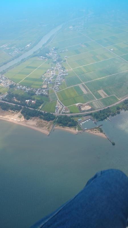 夏休み、生まれて初めての空を飛ぶ経験をしました。パラグライダーです!上空200メートルは風が強くて真夏なのに清々しい。琵琶湖の上から撮影しました。