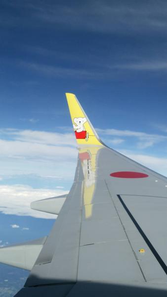 主人と近くですが飛行機利用での旅行に行った時です。孫が喜びそうなペインティングの飛行機でした!今度は車に描いて孫と乗りたいです!