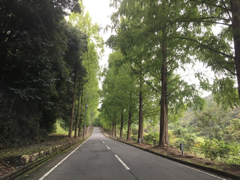 長い杉林ドライブ両端に立派な杉の木が並んで綺麗でした。アップダウンの少ない道で、、、