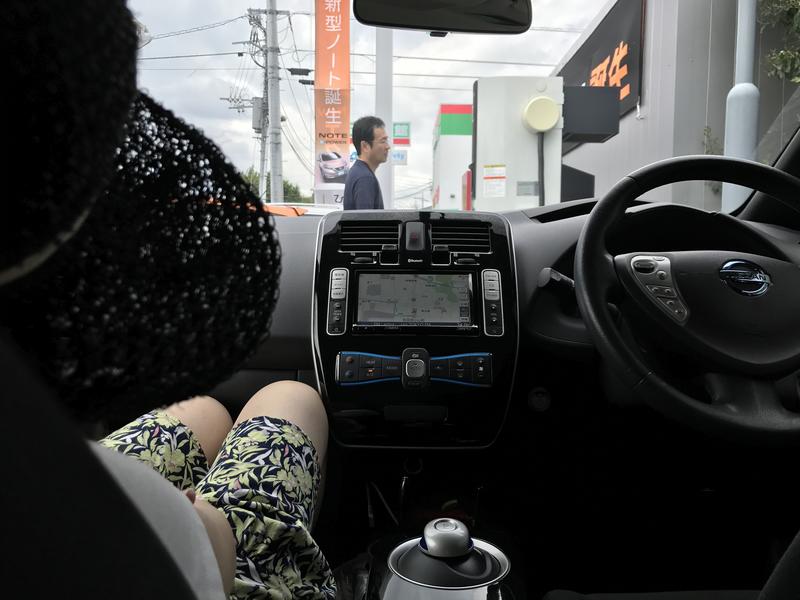 夏休みに単身赴任の父が帰ってきて、家族みんなでドライブ!そんな帰りに日産で充電、そして一休み母は疲れて熟睡し、父も少しお疲れの表情日産での一休みはとても安心できるものでした