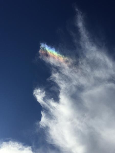夏の空に虹色のドラゴンが!彩雲がまるでドラゴンの様な形になっていました。