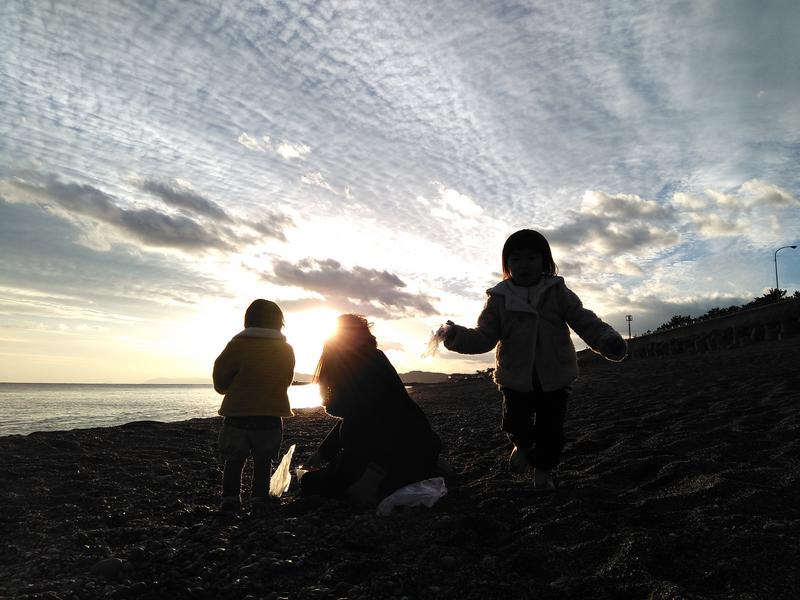 正月休みは家族4人で海へ繰り出す。黒潮に沿って東西に伸びる長い道。冷たい潮風に負けない元気で、砂浜を走り回り、貝を拾い、おやつを食べて、波打ち際で靴を濡らす。みんな笑顔。気づいたら、すぐに夕暮れになる。1月3日の誕生日は必ず正月休み。最高の季節だ。昨日は西の海へ今日は南の海へ明日は東の海へ行こうかな。来年もまた、変わらない海で、妻と子供たちと誕生日を楽しもう。