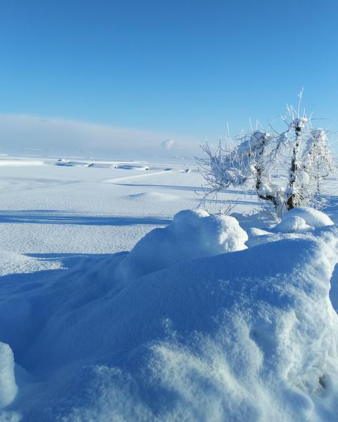 前日の大雪から一変、キンキンに冷えた快晴の朝の雪景色です。