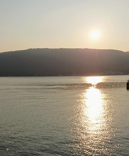 初めてフェリーに乗った日の事です。朝が早く眠い中の運転が大変でしたが、フェリーに乗り外を見渡すと朝焼けが海に溶け一つのキャンパスのように綺麗に彩られていました。この景色の為に頑張れたと思える程の景色でした。