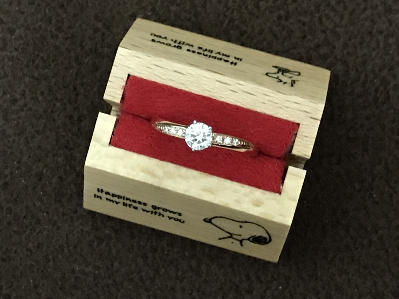 結婚前の誕生日に地元のレストランへ食事へ行きました。旦那がスカイラインを購入してまだ間もないころで、家まで迎えにきてくれてレストランまで音楽を聴きながら向かいました。おいしくご飯を食べていて、デザートがくるというタイミングでお店の音楽が急に変わりました。そして大好きなスヌーピーの婚約指輪をもらいました。周りの人のたちが拍手しておめでとうって言ってくれました!後から聞いた話ですが、東京のお店で頼んで、できたと連絡をもらったその日にスカイラインで高速に乗って指輪を取りにいったそうです。