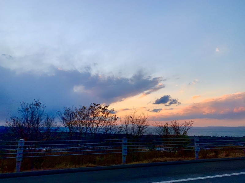 年が明け、淡路島へ行った帰り、走っている車窓から撮影しました。寒い雲とグラデーションの暖かさ。手前の枯れた木が冬を感じさてくれるなと思い、久々のドライブを気持ちよく楽しむことができました。
