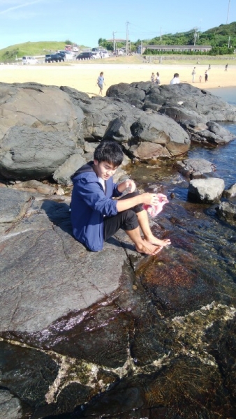 私の誕生日に、家族で県内の"唐津”というところへ、ドライブした時です。もう、二十歳を過ぎた息子を撮りたいのですが、なかなか撮らせてくれません。隠しながら、やっと撮れた1枚です。貴重な1枚です。