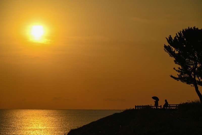 早起きしてみると天気がとても良いので、カメラを持って海まで出掛けました。綺麗に輝く朝日と早朝を過ごす人のシルエットを組み合わせて、写真に撮りました。