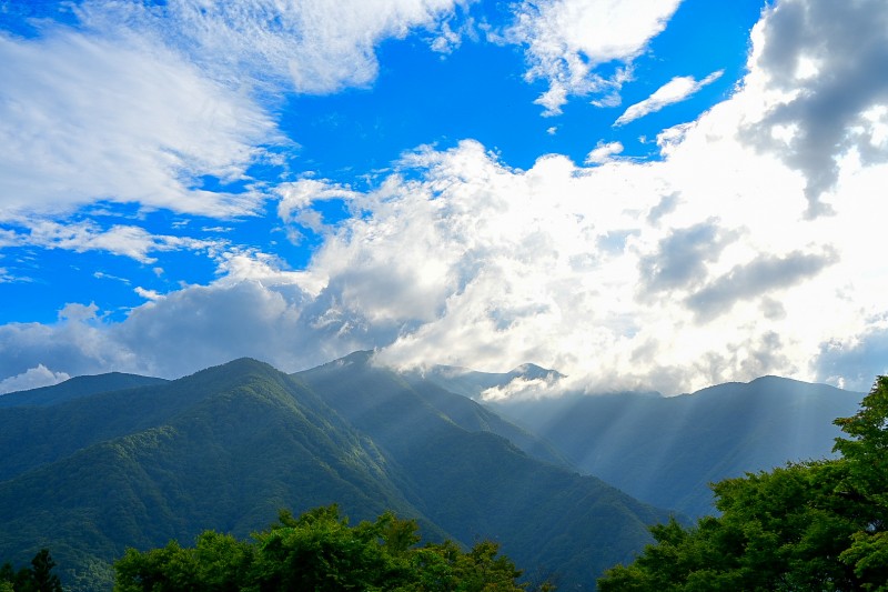 今年度は雨の多い時期が続いていました。久しぶりの青空を見ると、いつも以上に心が晴れます。多湿の空は、私たちの目に太陽の光を光芒として如実に映し出します。明るさの強い難しい条件でありながらも、凛とした光芒を写真に収めました。