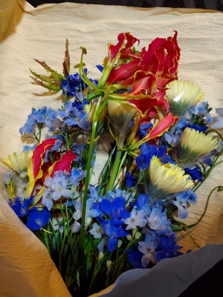 隠しながら家に入って驚かせようと車の中で主人が息子に言って、息子もわかったと返事をしたそう。しかし、その直後玄関のドアを開けながら息子は「ママー、お花買ってきたよー。」と大きい声で言ってしまったのです。私へではなく、旦那へのサプライズになってしまいました。
