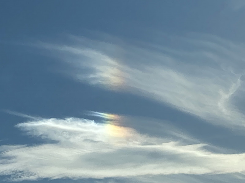 無事お墓参りを済ませた帰り、車の窓から見上げると、雨も降っていないのに、ちょっとだけですが虹が見えたので、慌てて夫が撮影。