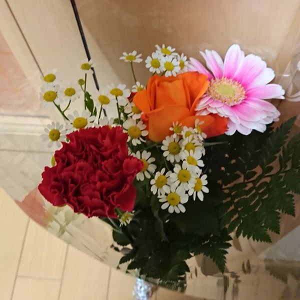 なんと花束を持って(涙)その日は私の誕生日。