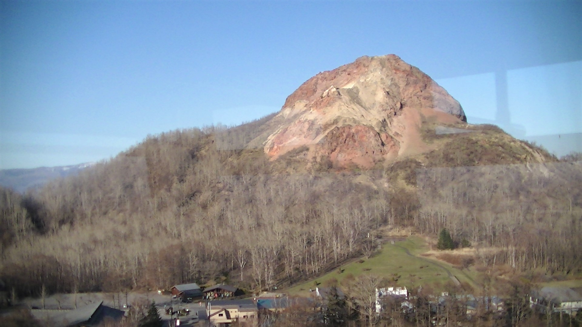 ロープウェイから見る昭和新山は、夕映えで輝いていました
