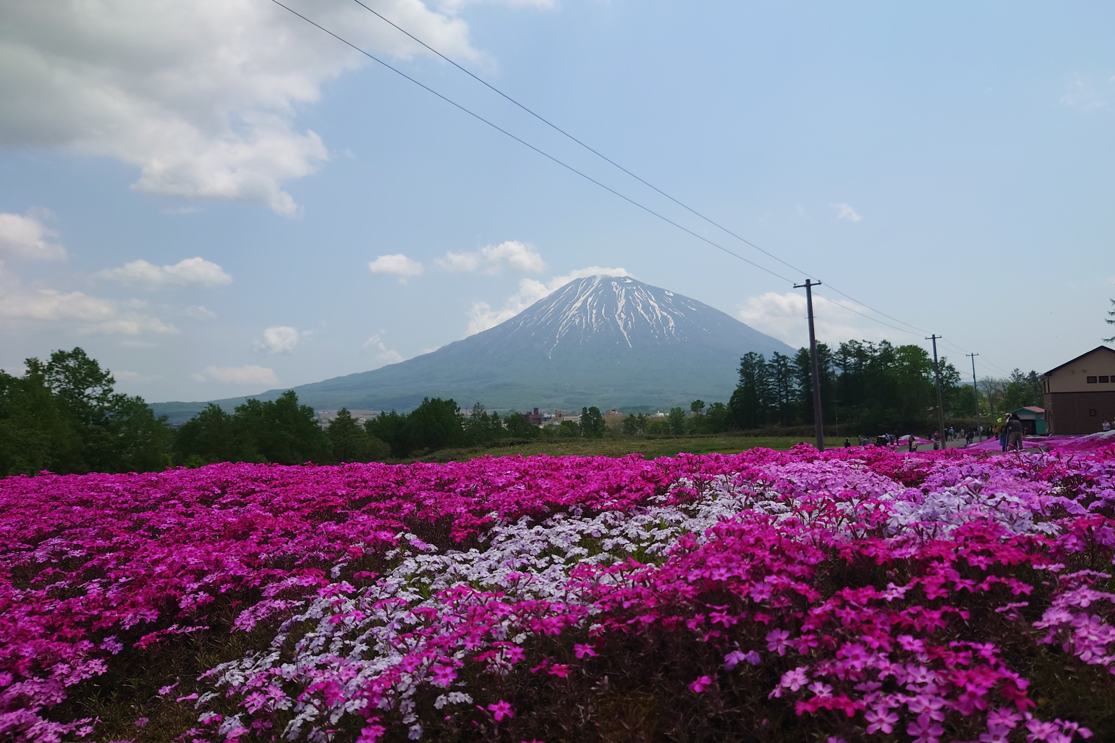 芝桜と雪残る羊蹄山