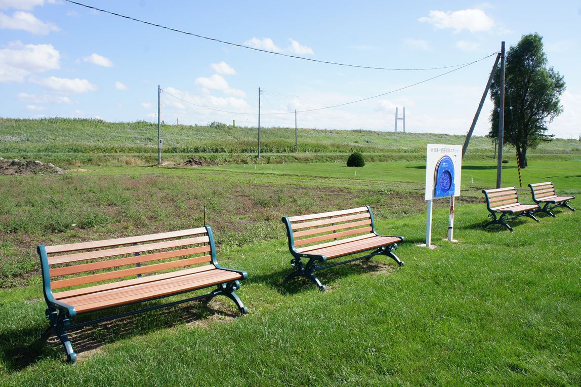 大型の星座早見盤とベンチが設置された星座観測場