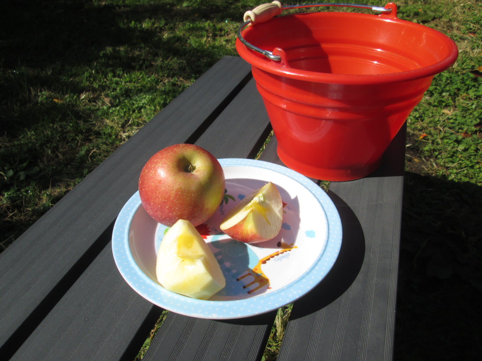 ベンチで採りたてを賞味