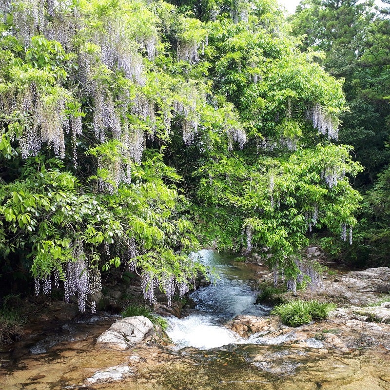 藤の花と清流のコントラストがとてもキレイ