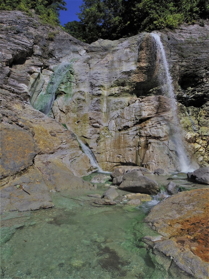 駐車場も広く、そこから歩いて簡単に行ける距離であり、また滝つぼの近くには簡易なものですが、更衣室まで作られています。