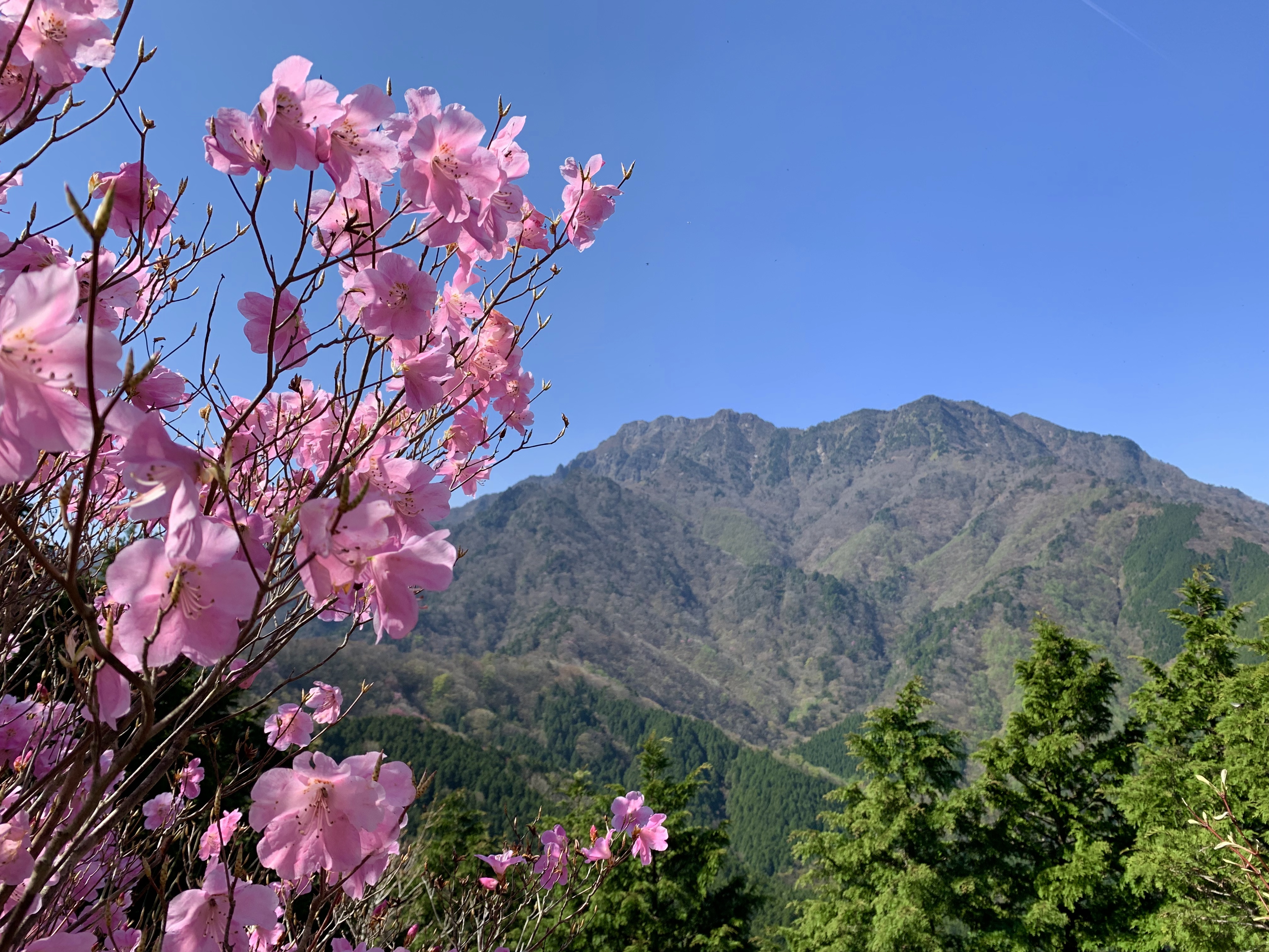 新緑の山々に、アケボノツツジが 可憐な彩りを添えていました。