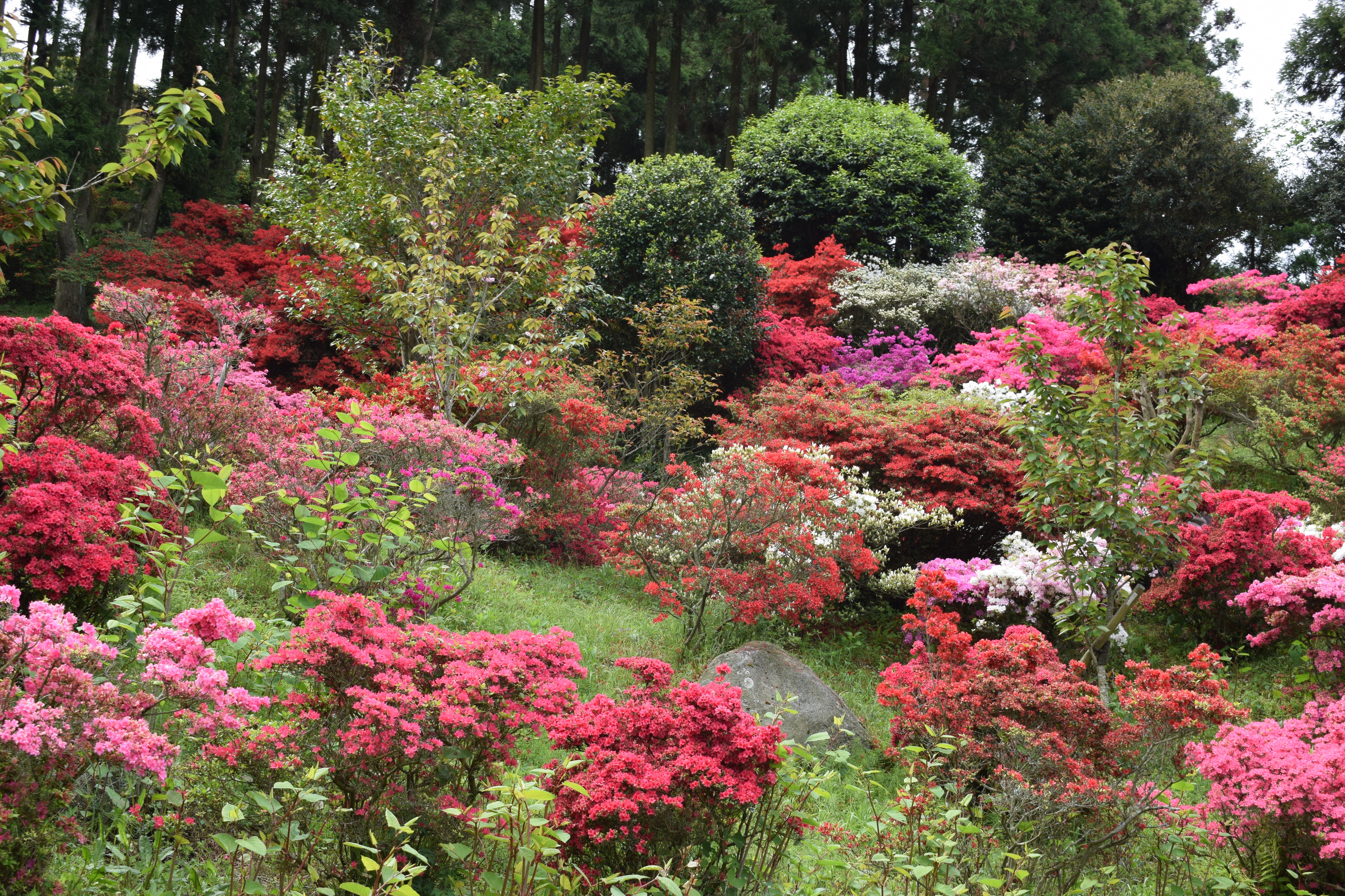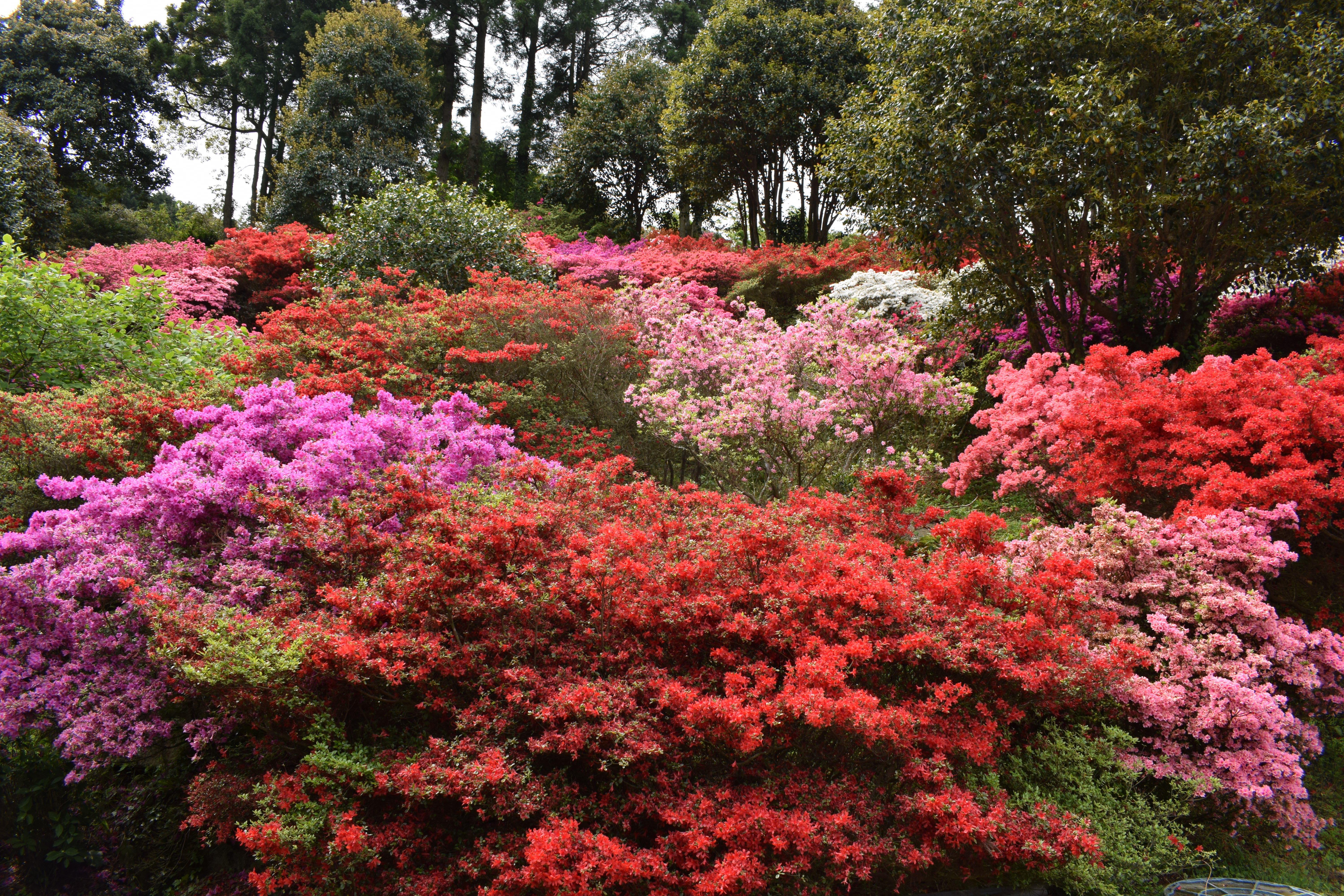 色とりどりのつつじが咲いています。