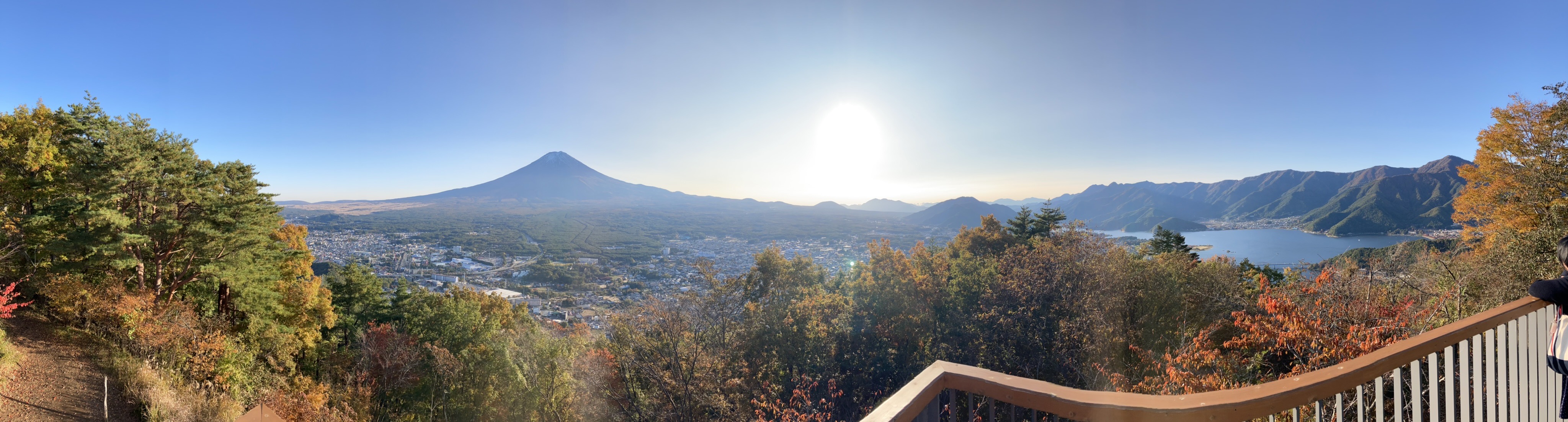 河口湖の駐車場に車を止め、富士山パノラマロープウェイで天上山へ。山頂駅から5分も歩けば展望台。写真はそこから見た景色です。快晴だったこともあり、美しさに感動しました。子供達も心が洗われたようで、帰りの車中でもこの景色を何度も話題にしていました。また是非訪れたいと思います。