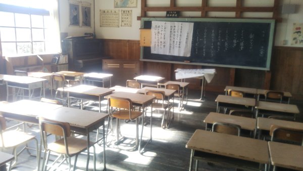 廃校となった後者です。校舎の外観は自由に見学できます。校舎の中は、開いていないときと開いているときがあるようです。今回は幸運にもポランティアガイドツワーが開催されていて中を見学できました。昔の懐かしい雰囲気がいい感じでした。映画のロケでも使われたそうですよ。