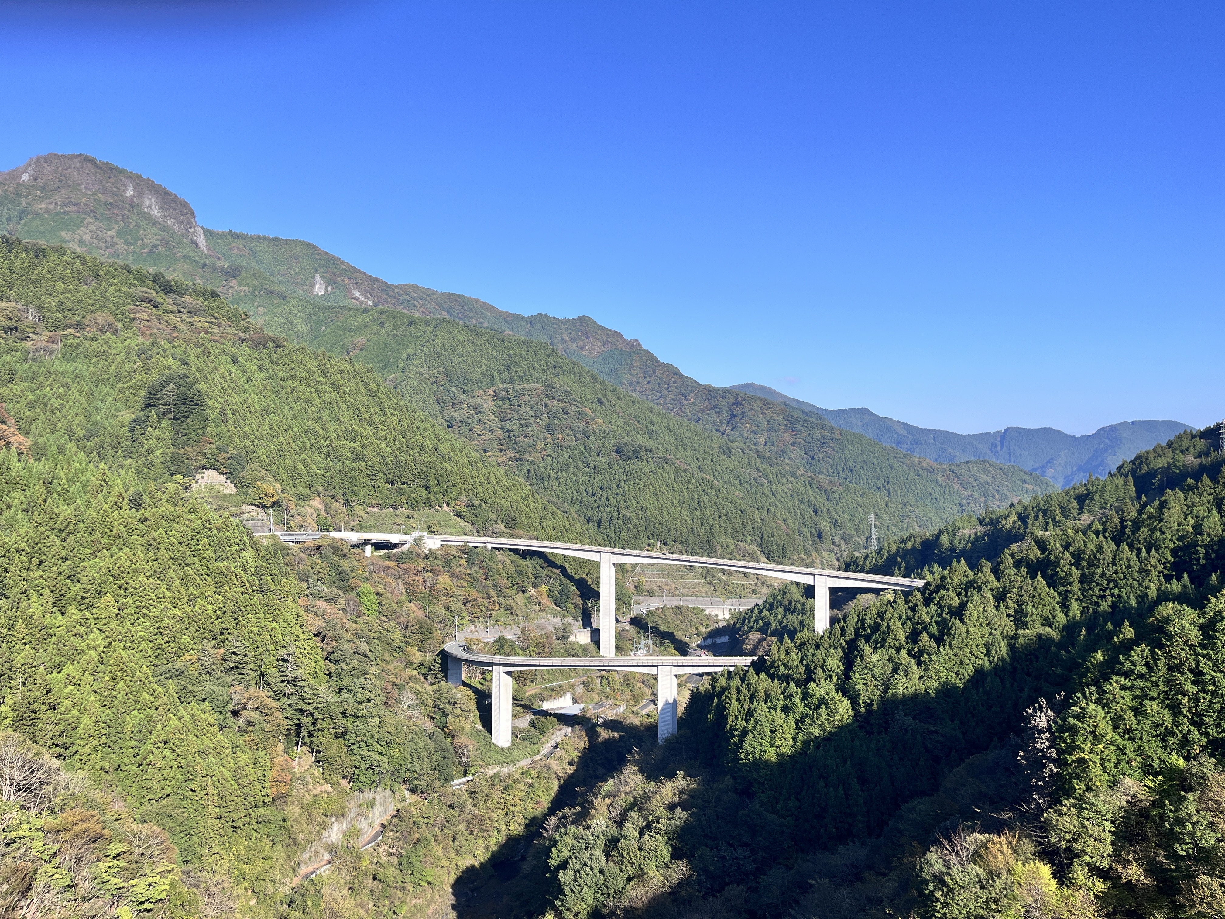 ループ橋の途中と、のぼりきった先のダムにフォトスポットがあります。添付の写真はダムから撮影したものです。