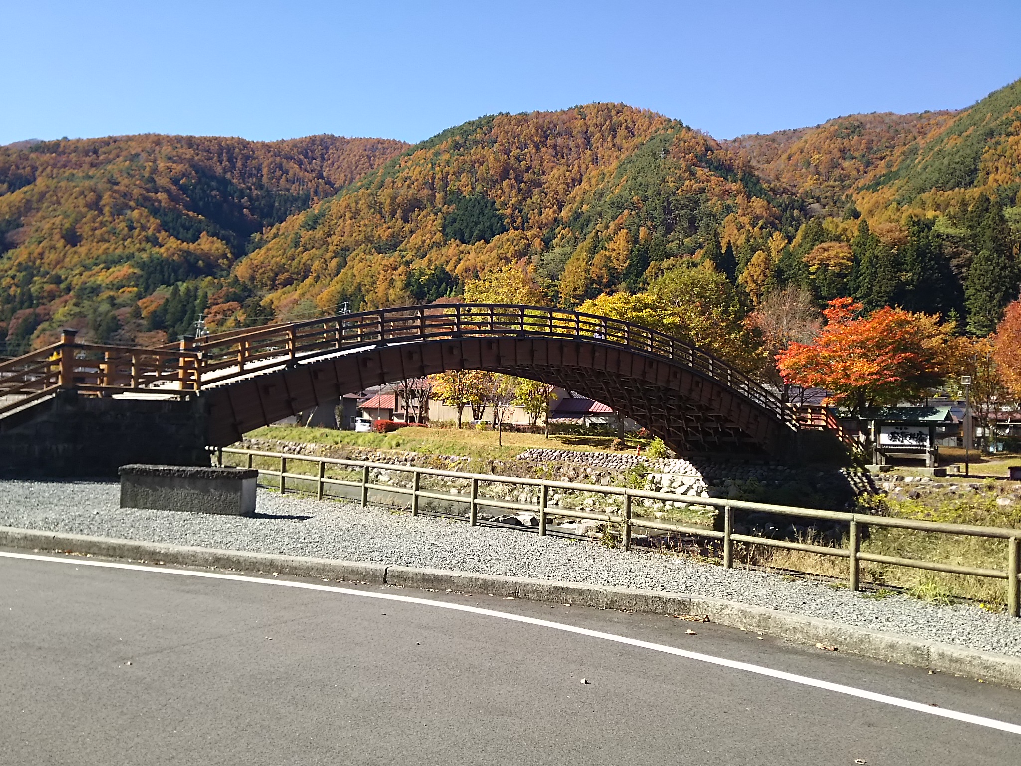 駐車場は無料でした。木曽ヒノキの大橋の近くに泊めて、線路をくぐり角を曲がると、いきなりタイムスリップです。
