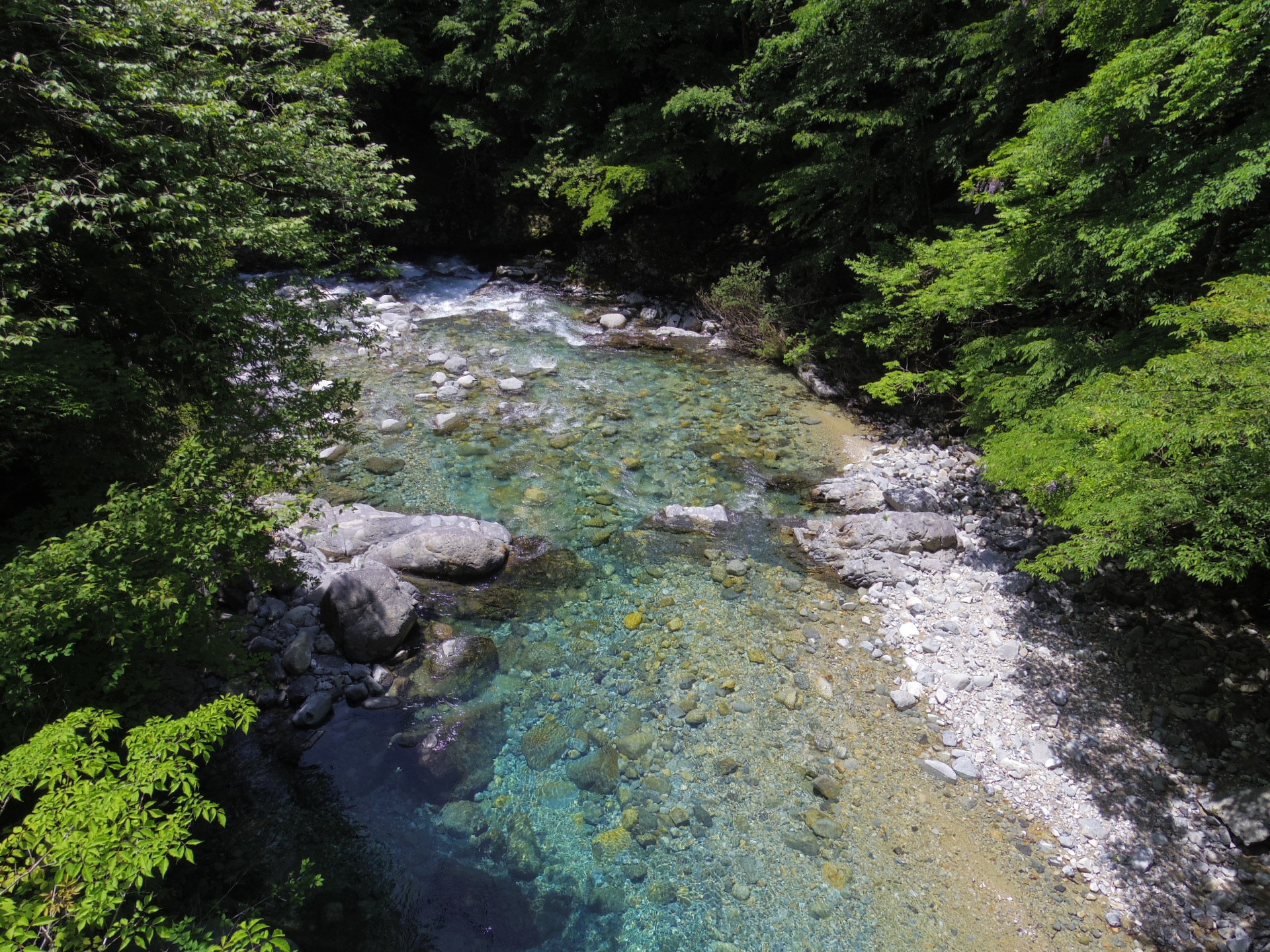 車窓からも、清流がもちろん楽しめますし、ところどころに駐車スペースがあり、気軽に清流を楽しめます。