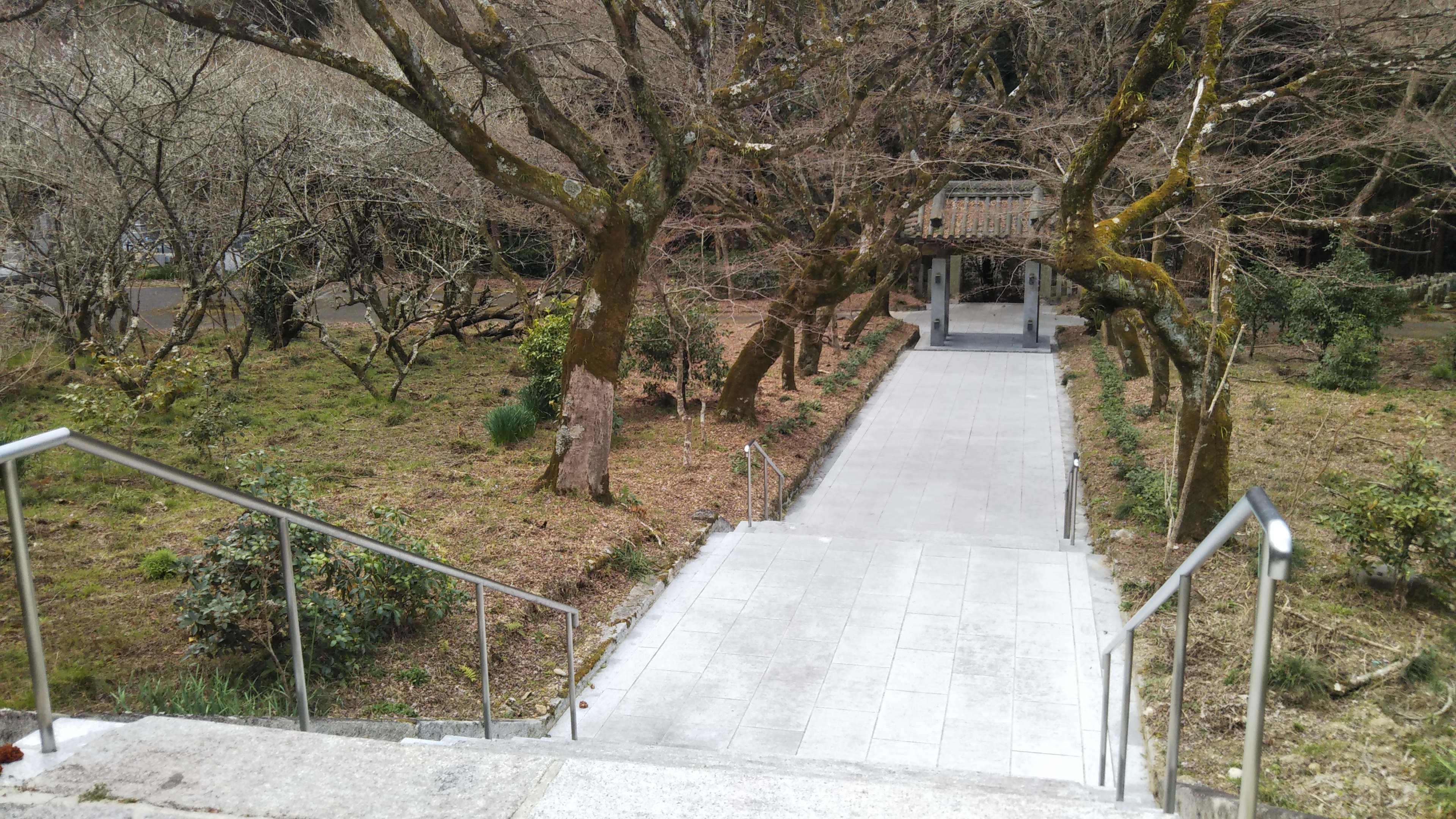 静かな境内へと続く階段の両脇には手入れの行き届いたカエデ、紅葉、イチョウの木々。少し奥には梅の木もありました。登りきったところに三蔵門という門があり、11月末に訪れた時はイチョウの落ち葉で黄色に染まっていました。奥の院の岩屋堂へはここから直接入れませんが、すぐ近くですのでこちらもお参りされるといいと思います。