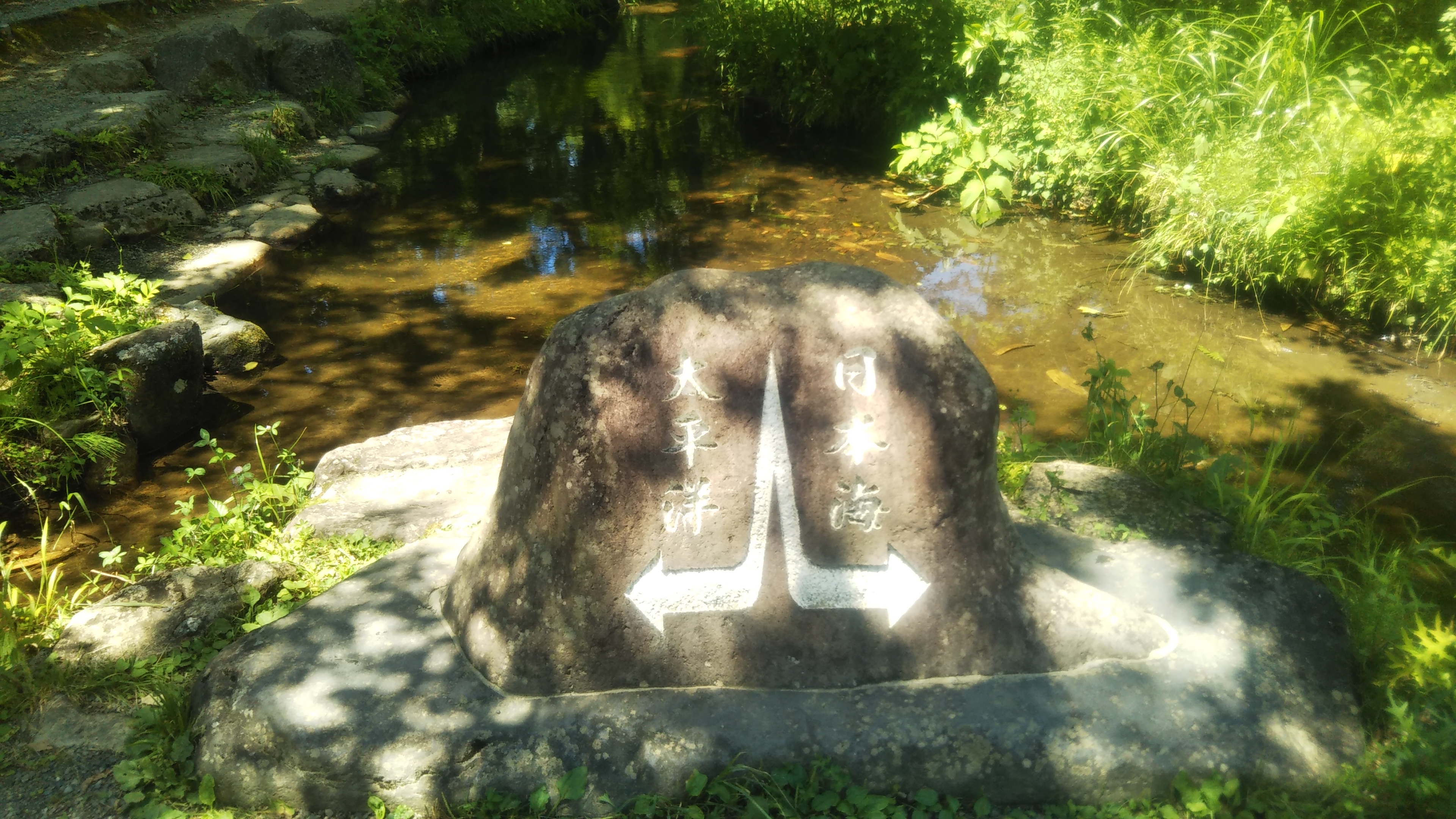 日本海と太平洋という全く逆方向へ流れていく水も最初は1箇所から流れ出て、ここで分岐していく・・・。どこか人生の分岐点を感じさせられるスポットです。