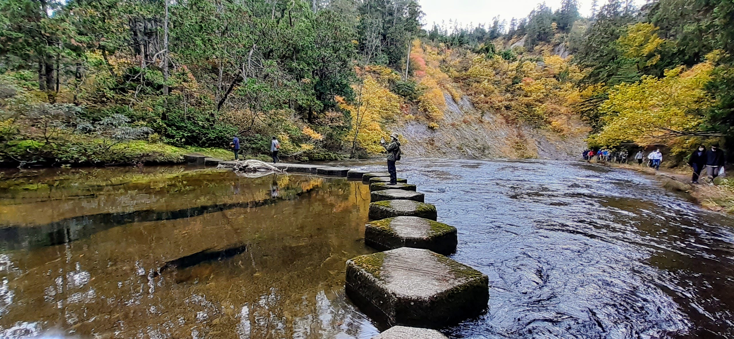 1日の気温差が激しいので湖からや遊歩道で見る本物の紅葉。