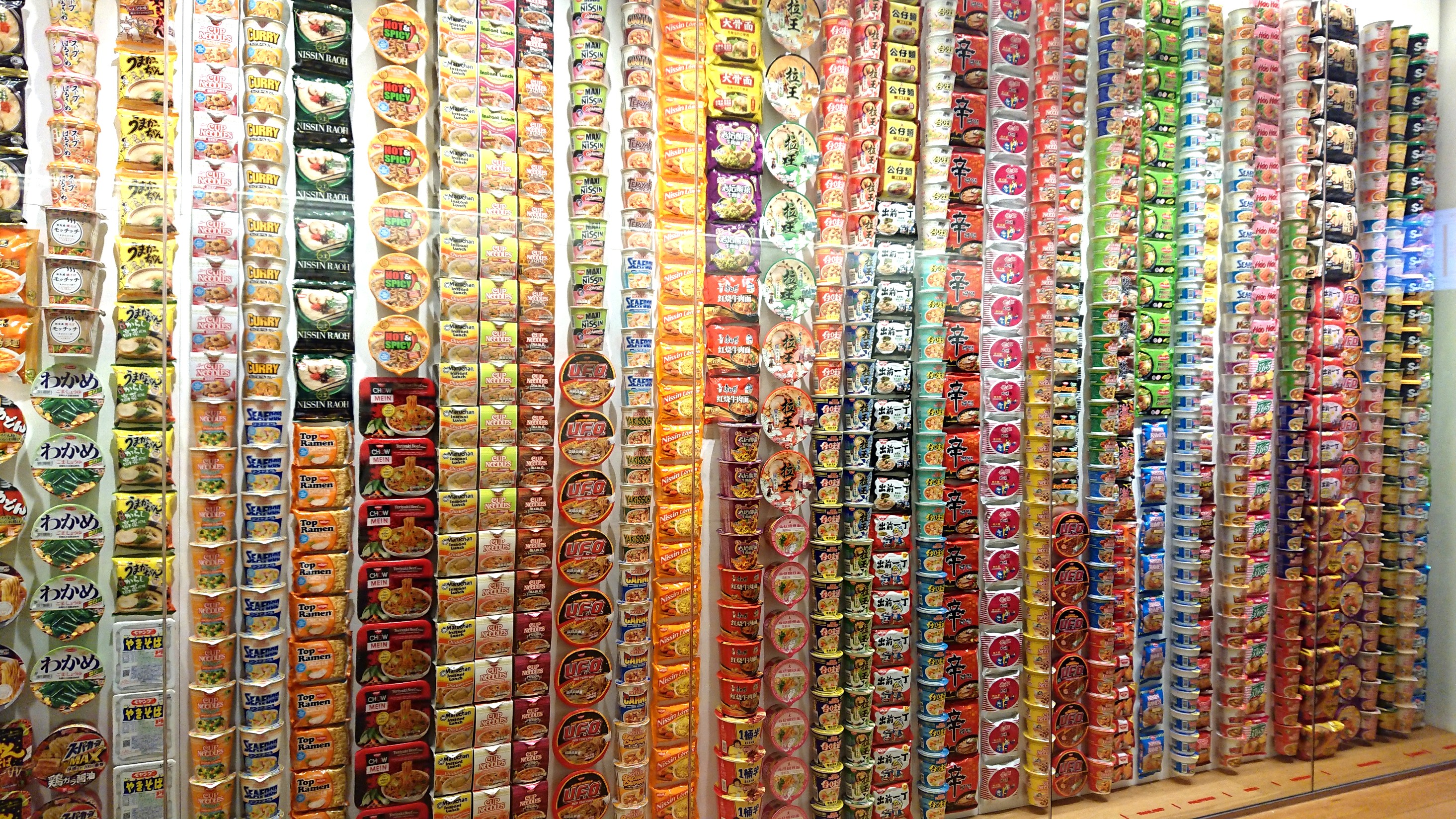 中でもこの写真のカップヌードルが壁中に飾られた所は圧巻です!!