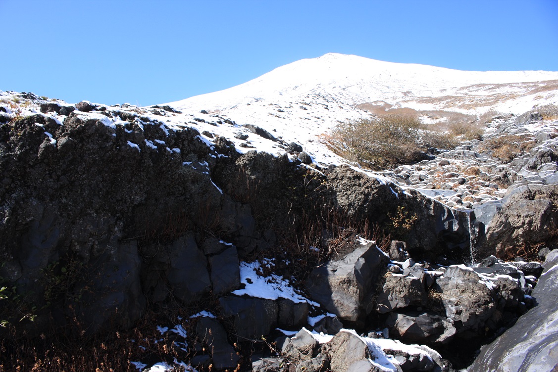 紅葉目的で10月に行きましたが前夜に降雪があり日が昇ると小さな滝が出現していました。