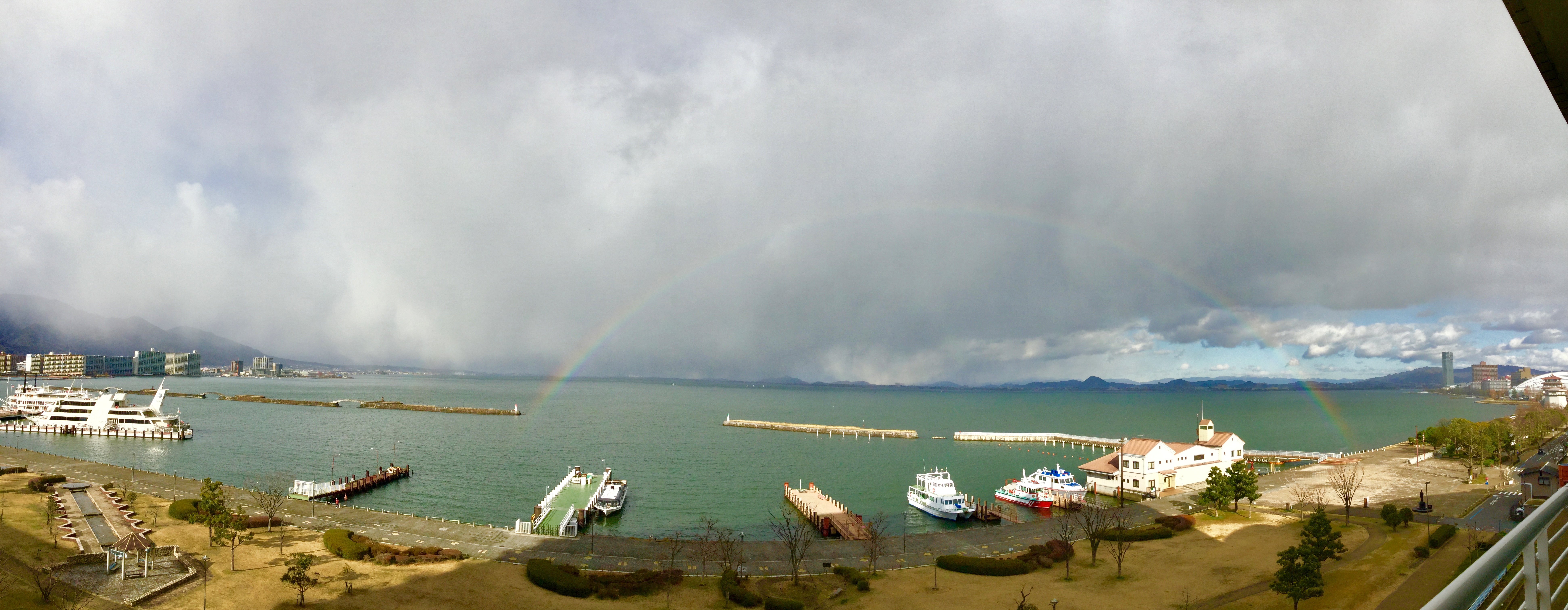 部屋から琵琶湖を見ていたら、まるでお祝いのように