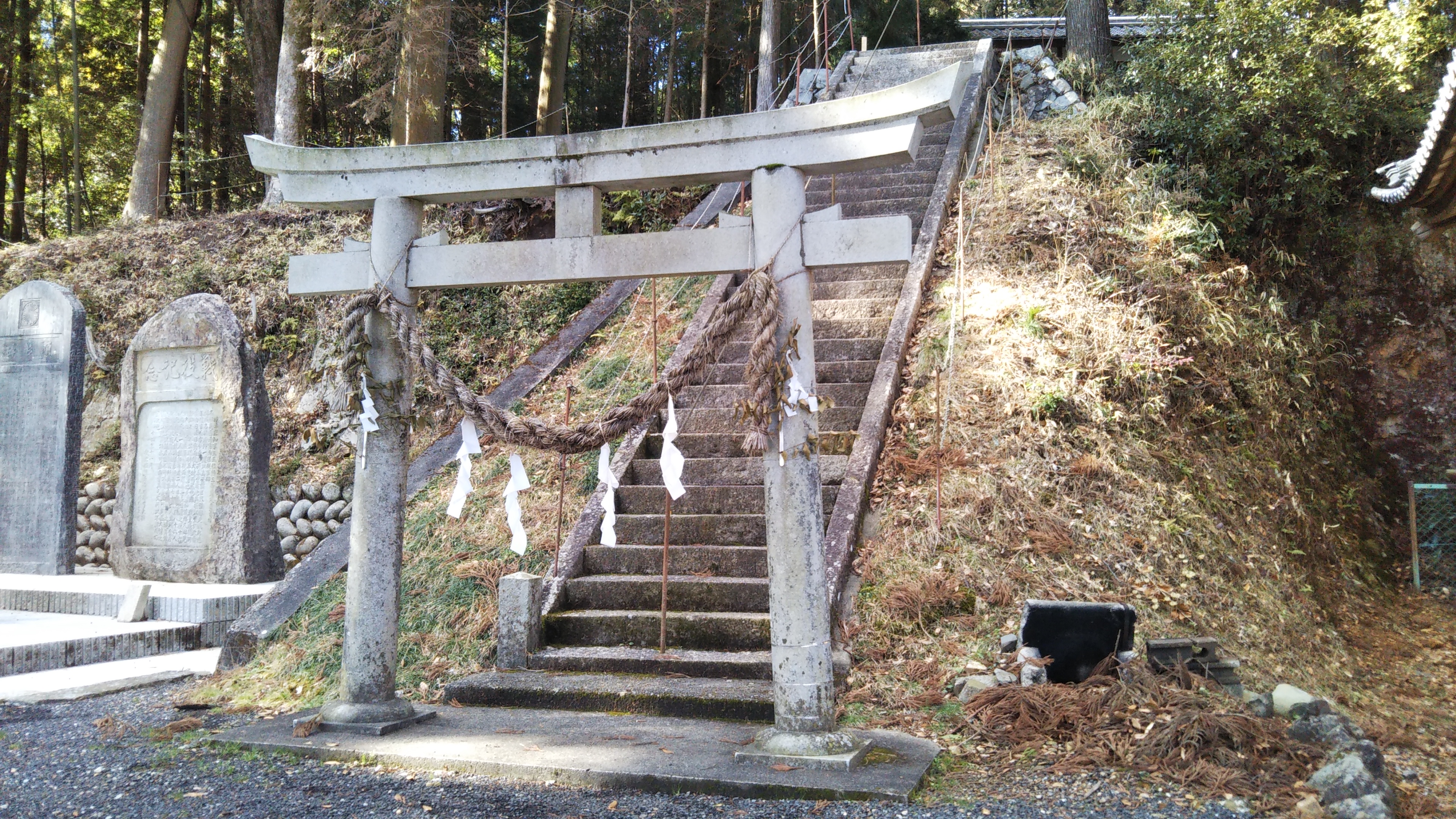 山間にある神社で、大きな木々に包まれ、神聖な雰囲気が漂っていました。周りには建物が少ないので、とても静かです。空気も綺麗で、神社パワーを頂けそうな感じでした。後で調べてみたら、この神社で山車のからくり奉納がされるそうですよ。