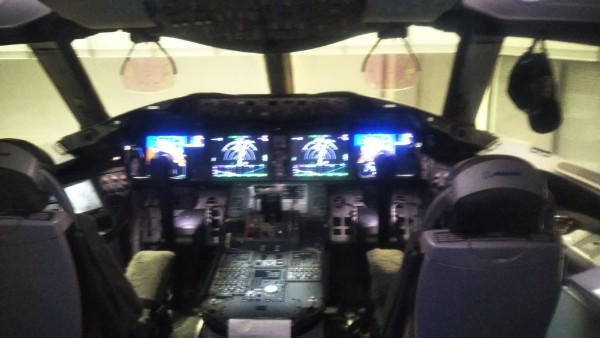 ボーイング787が間近で見られる施設です。リニューアルして、子供用の遊具エリアが作られ、入場料も無料になっていました。コックピットは1組数人づつに分かれて見学することができます。