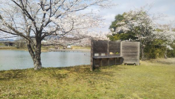 池に面した場所にある自然公園風の広場です。園内には桜の木が植えてあり、花見に訪れる方もいました。竹林や野鳥観察場、桟橋なんかもあり、自然を感じながら過ごせます。公衆トイレがあるのもいいですね。