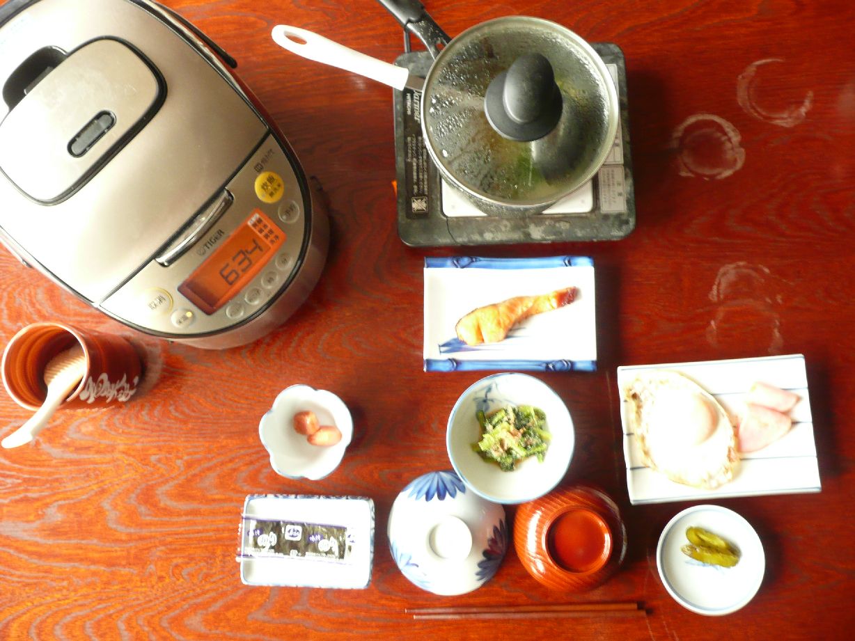 或る日の食事は、夕食がイカとサーモンの刺身・ホッケのフライ・牛肉の陶板焼き・タコの酢の物・イカ塩辛・煮物・雲丹とニラの味噌汁など、朝食が焼き鮭・ハムエッグ・たらこ・和え物・海藻の味噌汁など、家庭料理的なメニューで、ボリュームがあり大満足です。