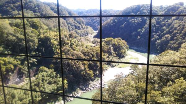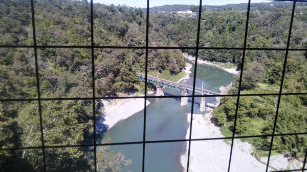 天龍峡大橋の車道の下を歩いて渡れます