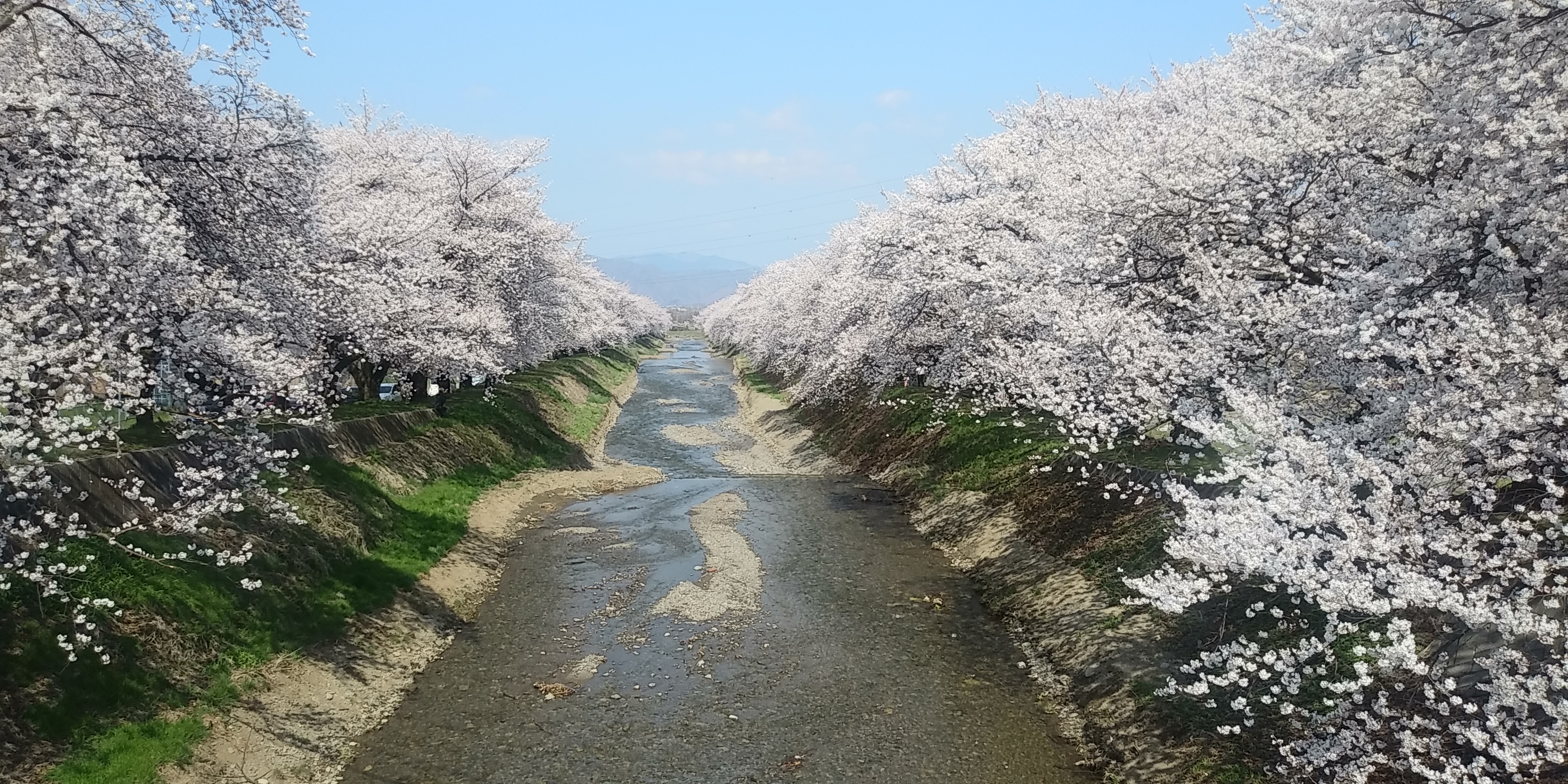 川の両岸に桜並木が続いていて、川のせせらぎと桜並木の景色は圧巻です。桜並木は川の下流から上流までの数百m~km続いおり、また高低差があるので長い期間、圧巻の景色を楽しむことが出来ます。