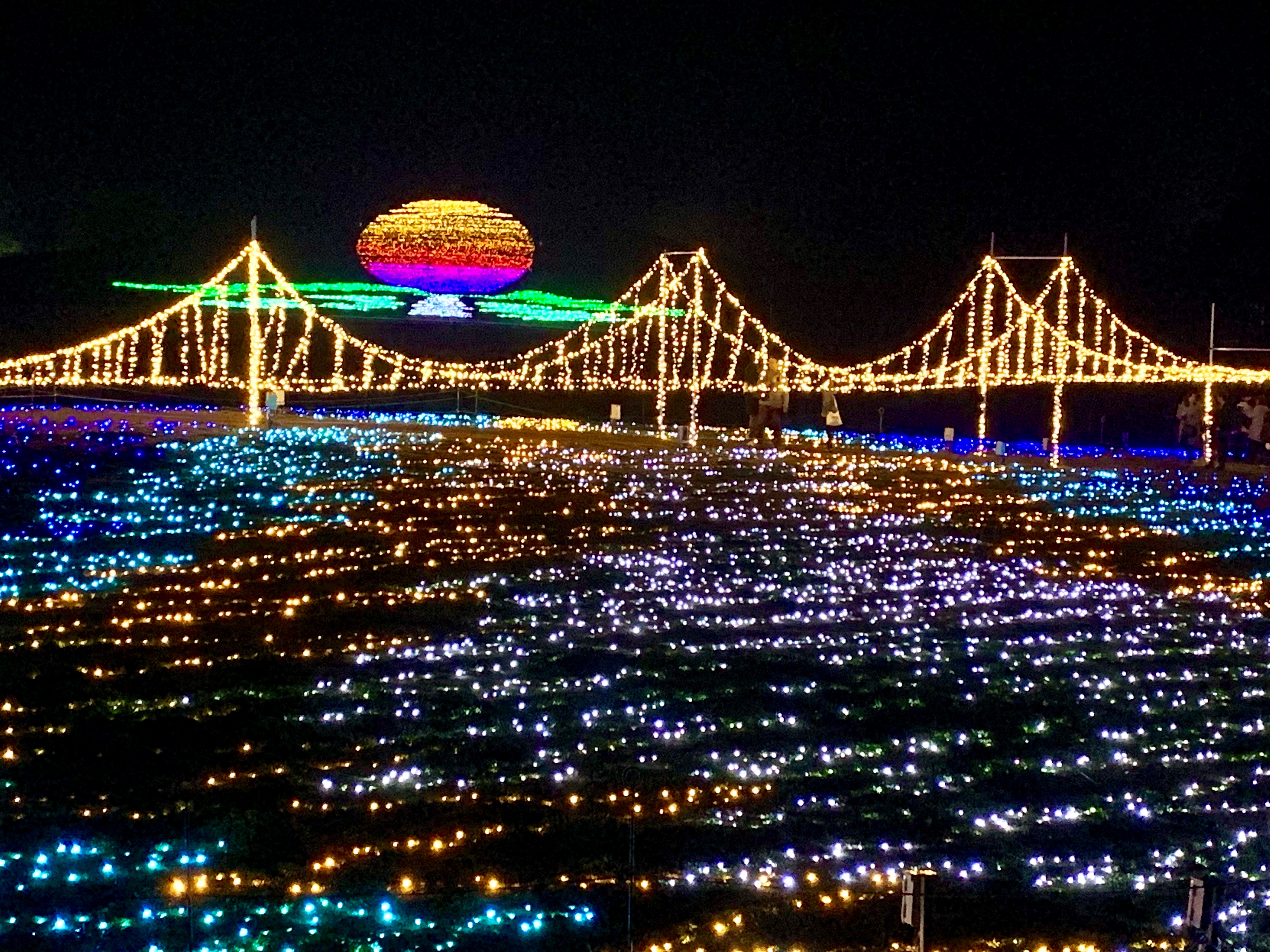 光の瀬戸大橋を渡り、煌びやかな絶景を楽しめます。
