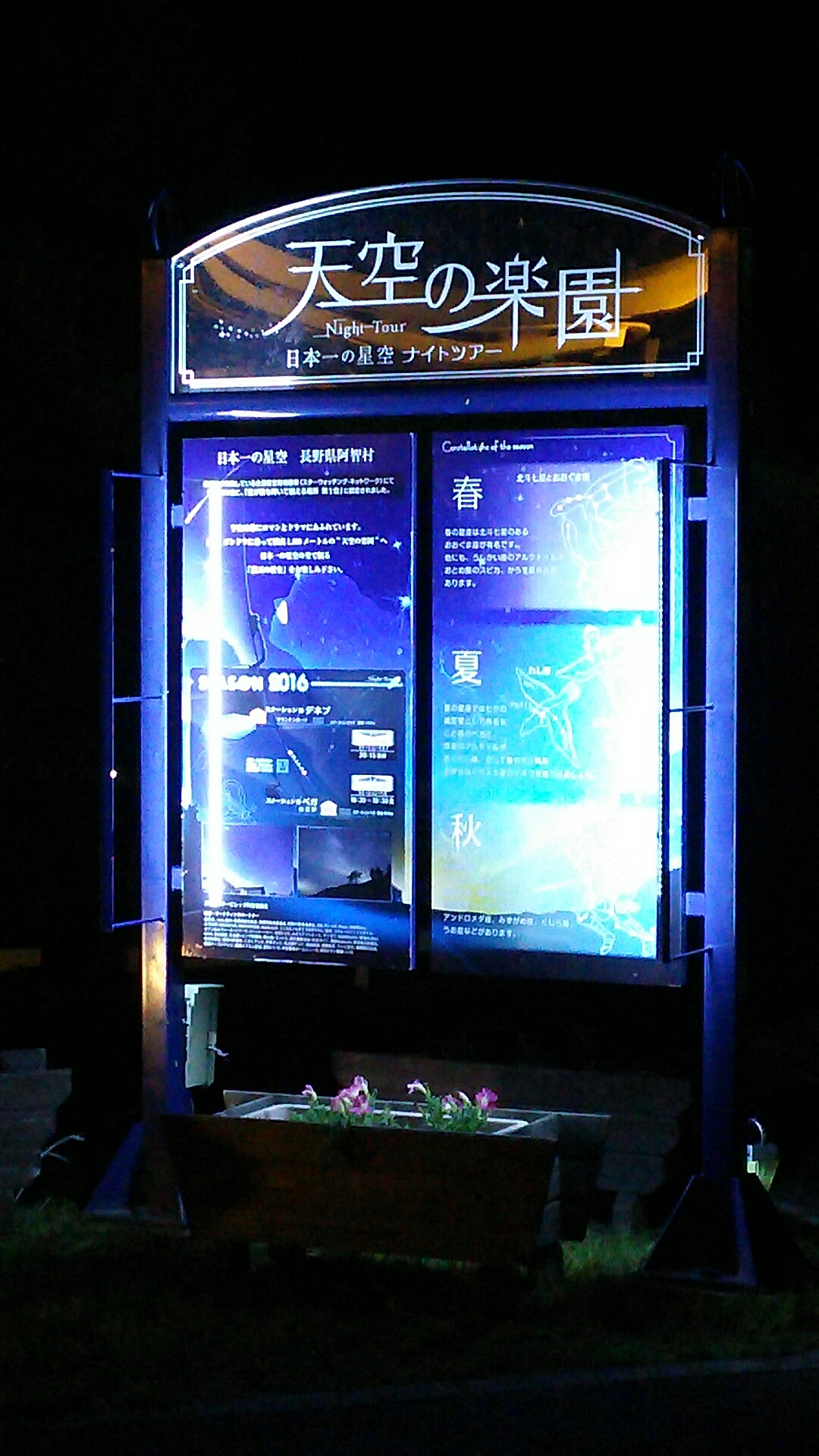 星が空一面びっしり空まで光が届くペンライト的なもので星の解説をしてくれました。