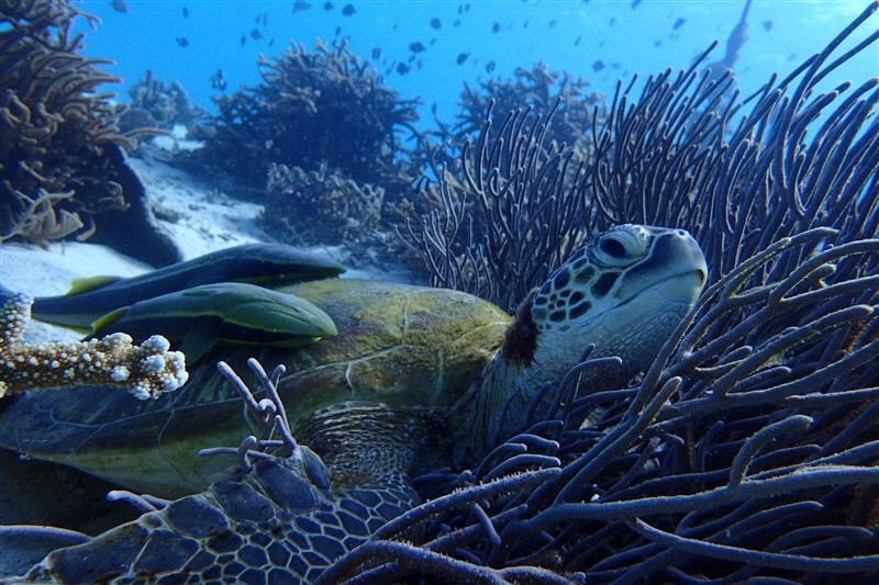 魚と一緒に泳げるし、時には、海ガメやタツノオトシゴにあえますよ。