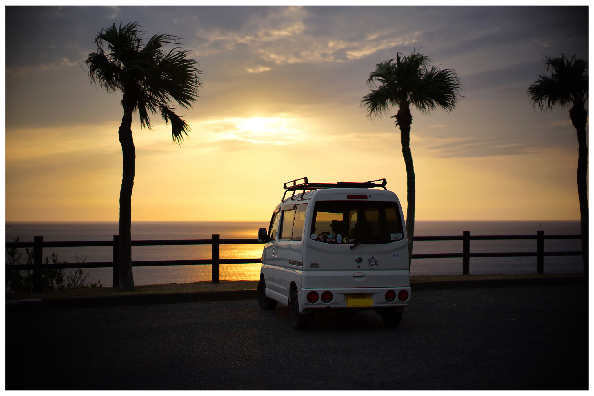 本当に見事な夕日で、夕日が海に反射してキラキラ。